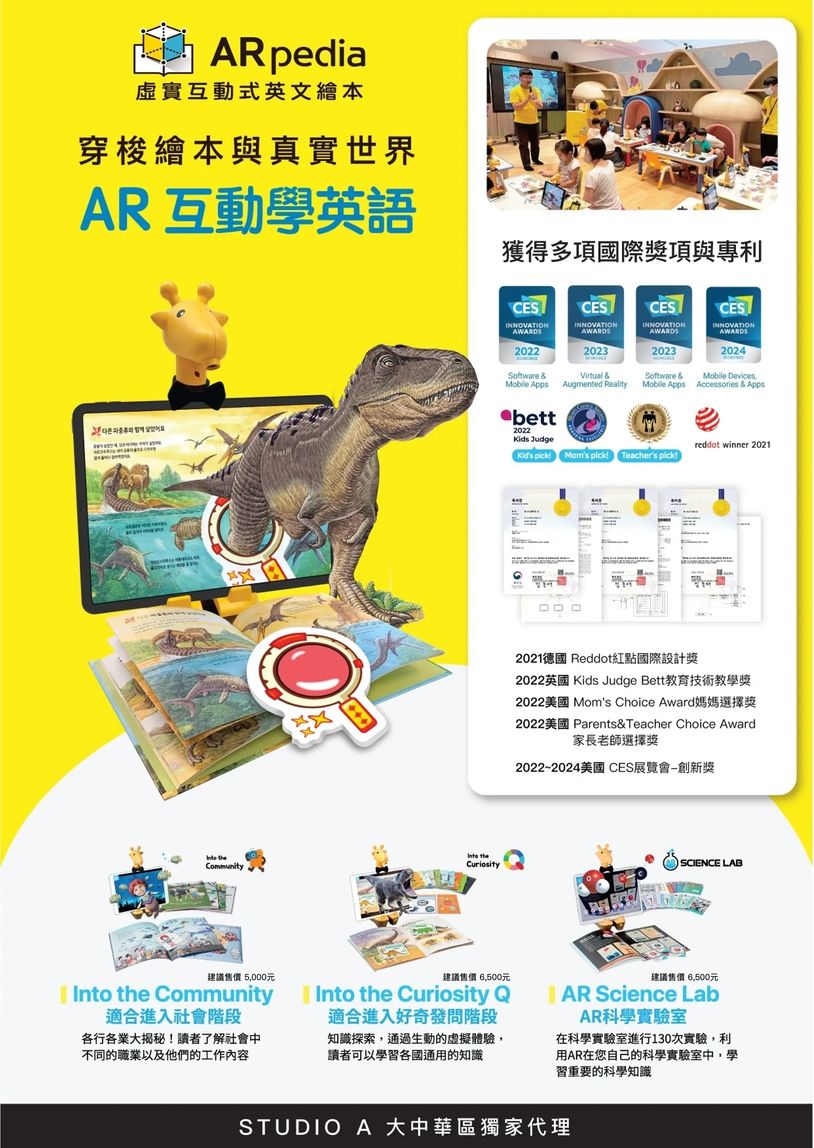 ARpedia 提供全英文互動式繪本,配合使用導讀App,協助師生、家長更深入了解內容,同時提供動作操作說明,透過雙語導讀互動教學,提高與小朋友的共學效率。